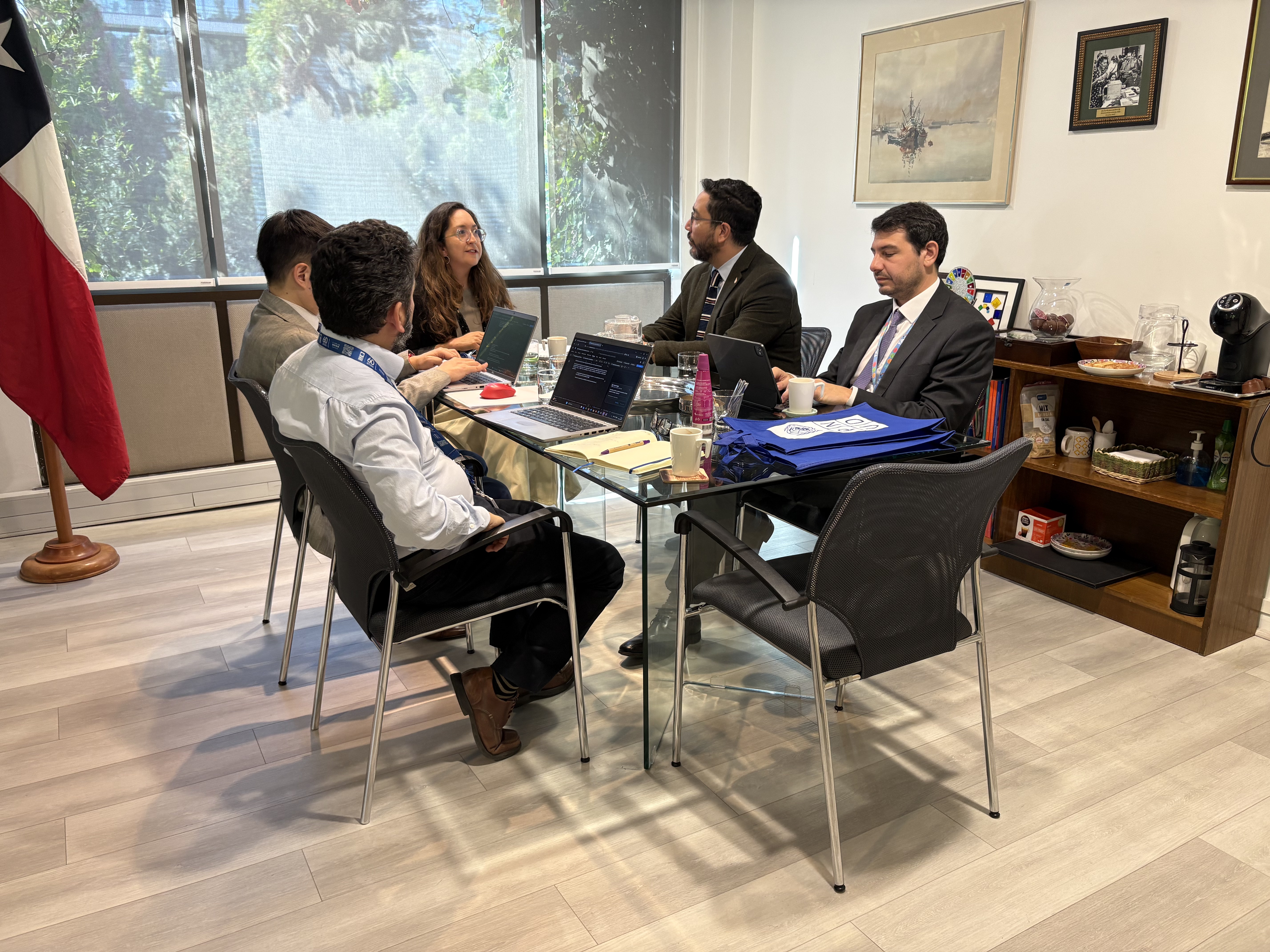 El secretario ejecutivo de la Comisión Asesora Presidencial para la Integridad Pública y Transparencia, Carlos Guazzini, junto al coordinador de esta, Andrés Echazarreta, se reunió con el equipo de Gobernanza y Territorio del Programa de las Naciones Unidas para el Desarrollo (PNUD), encabezado por su jefa, Valentina Salas, quien encabezó la instancia junto al asesor Francisco Sánchez.